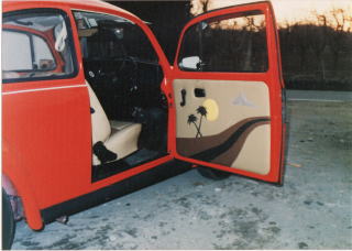 シート、内張り、シフトブーツ、すべて同じ素材で仕上げました。